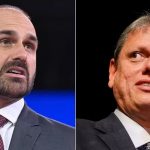 O governador de São Paulo, Tarcísio de Freitas (Republicanos), e o deputado federal licenciado Eduardo Bolsonaro (PL-SP), que protagonizaram uma desavença na crise do tarifaço,
